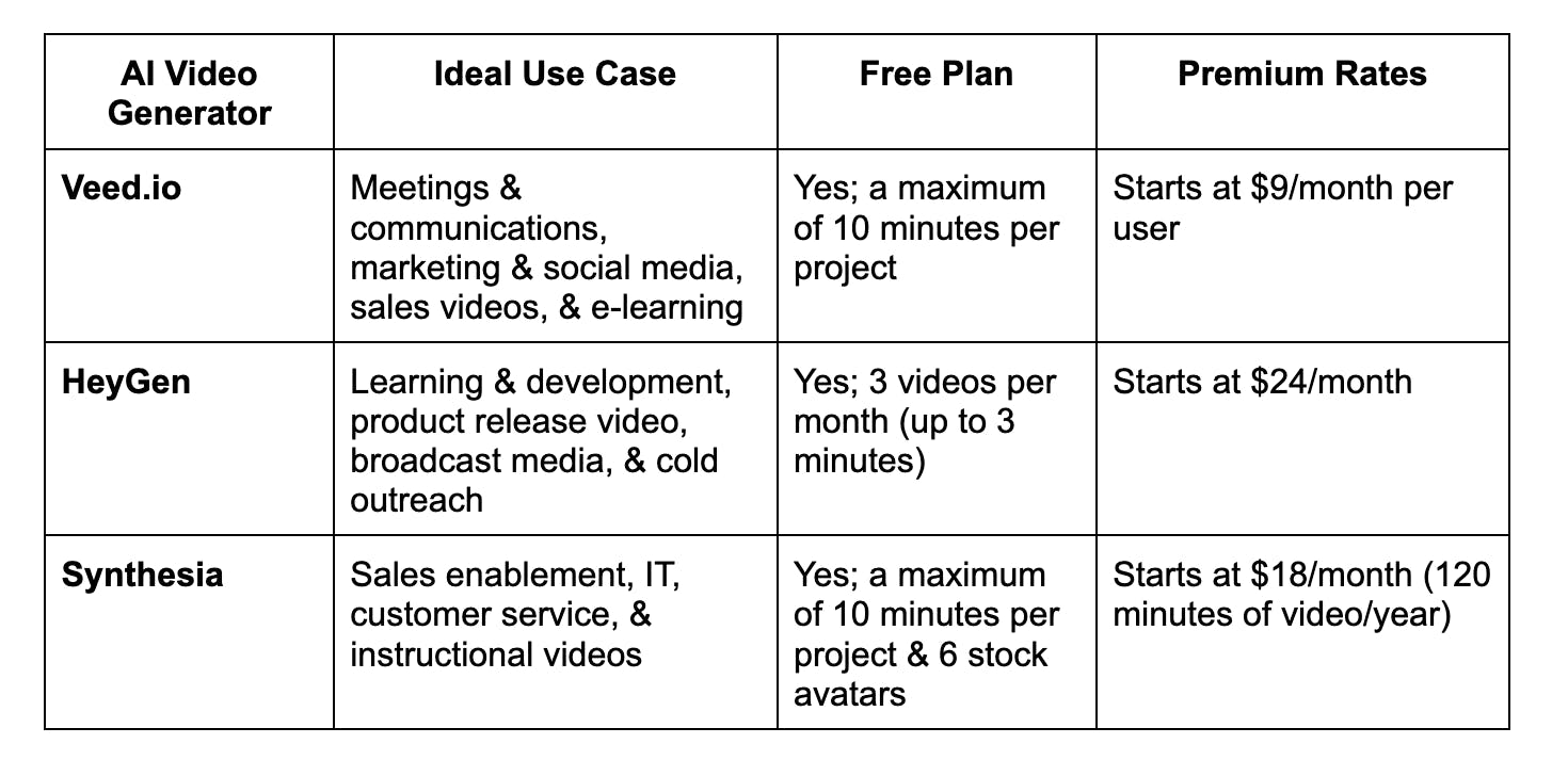 Choosing the right AI video generator isn’t just about features or ease of use. Focus on how well it helps you create more meaningful, authentic videos. Before deciding, try them out to see if it meets your goals. Most brands offer a free plan or trial period, test them and see how they work.