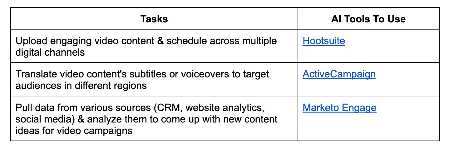 60% of marketers say AI helps them with their daily tasks. Marketing automation plays a major role in making this happen. As a standard, it automates repetitive manual tasks like selecting video templates. Let's say you are creating a promotional video, this AI tool will help you pick a video template designed to highlight a specific product or offer.