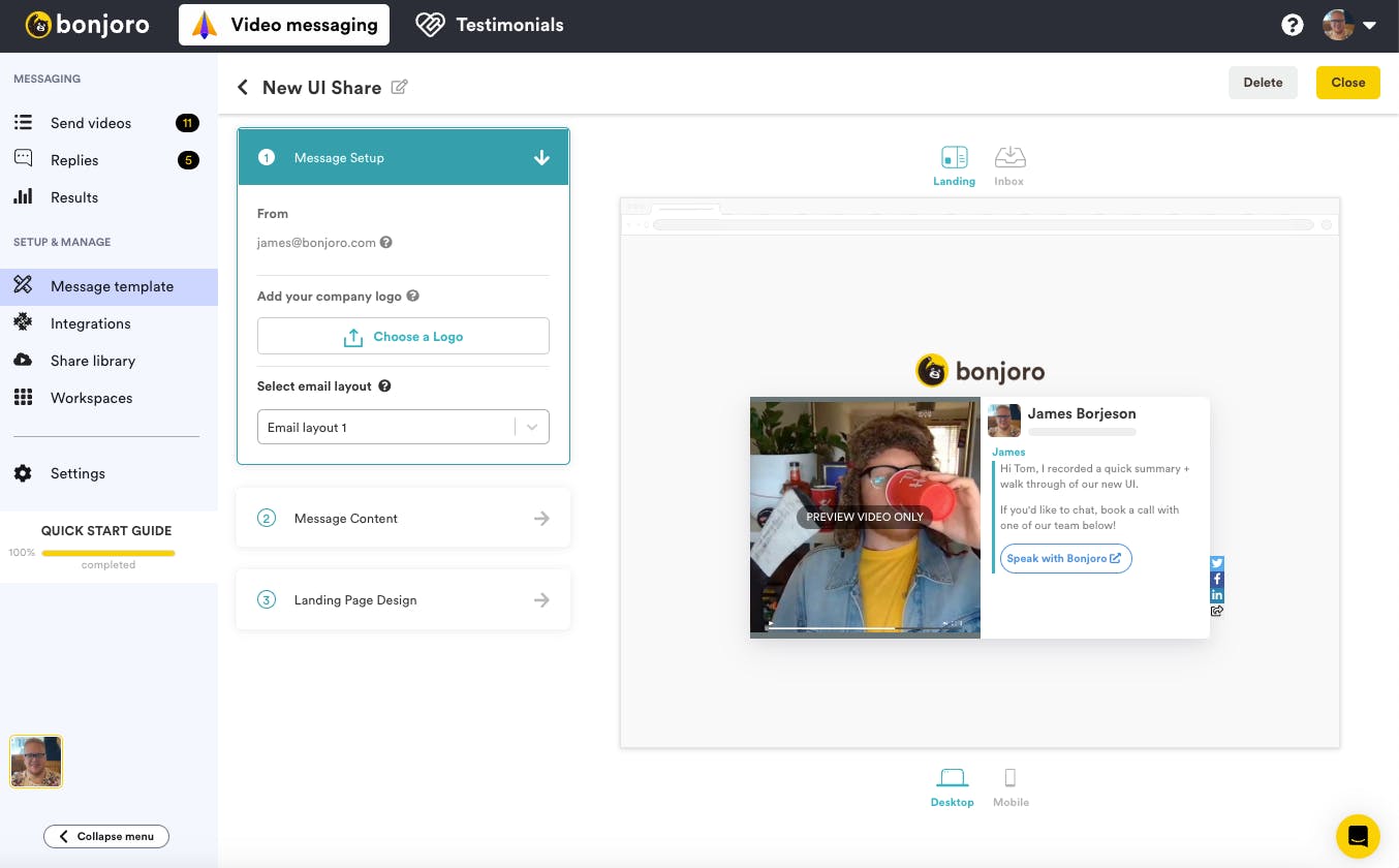 Bring all these strategies to life with Bonjoro, which helps you send personalized video messages, collect and showcase customer testimonials, and embed screen recordings and tutorials.