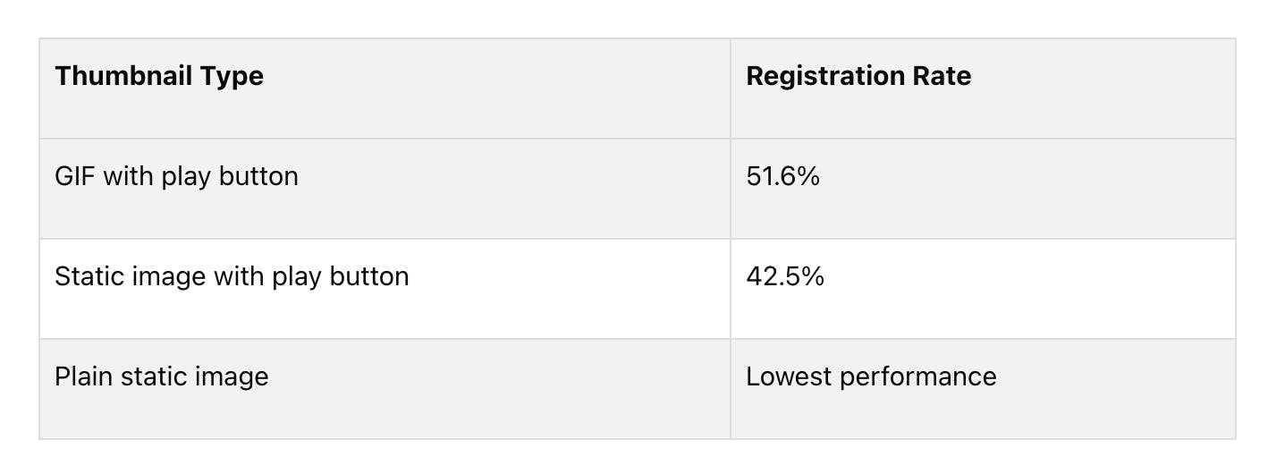 - Add a play button: This can boost clicks by 21.52%. It's a clear "watch me" signal.