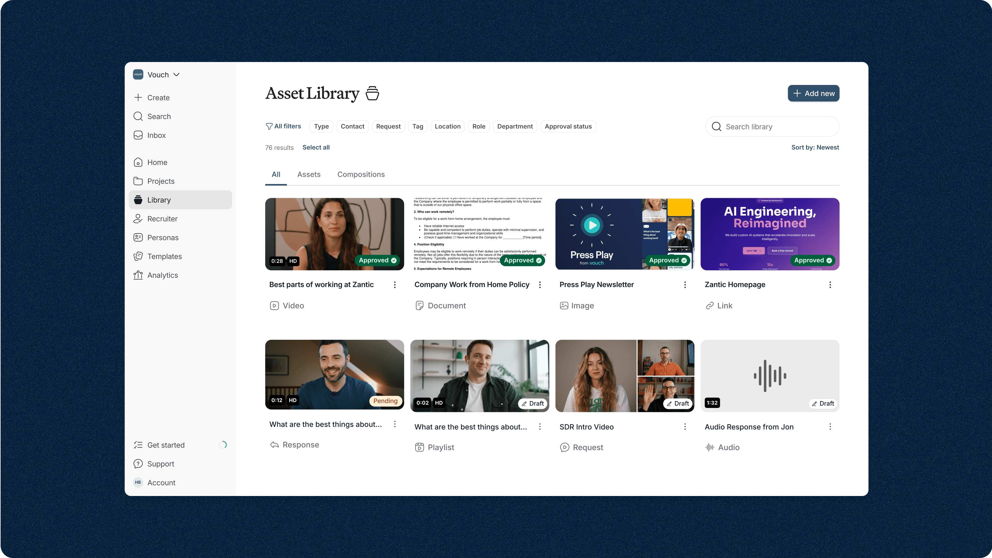 Vouch helps marketing and customer success teams build testimonial pipelines at scale. You can request recordings from clients, manage responses, and publish video clips directly to your site or sales materials.