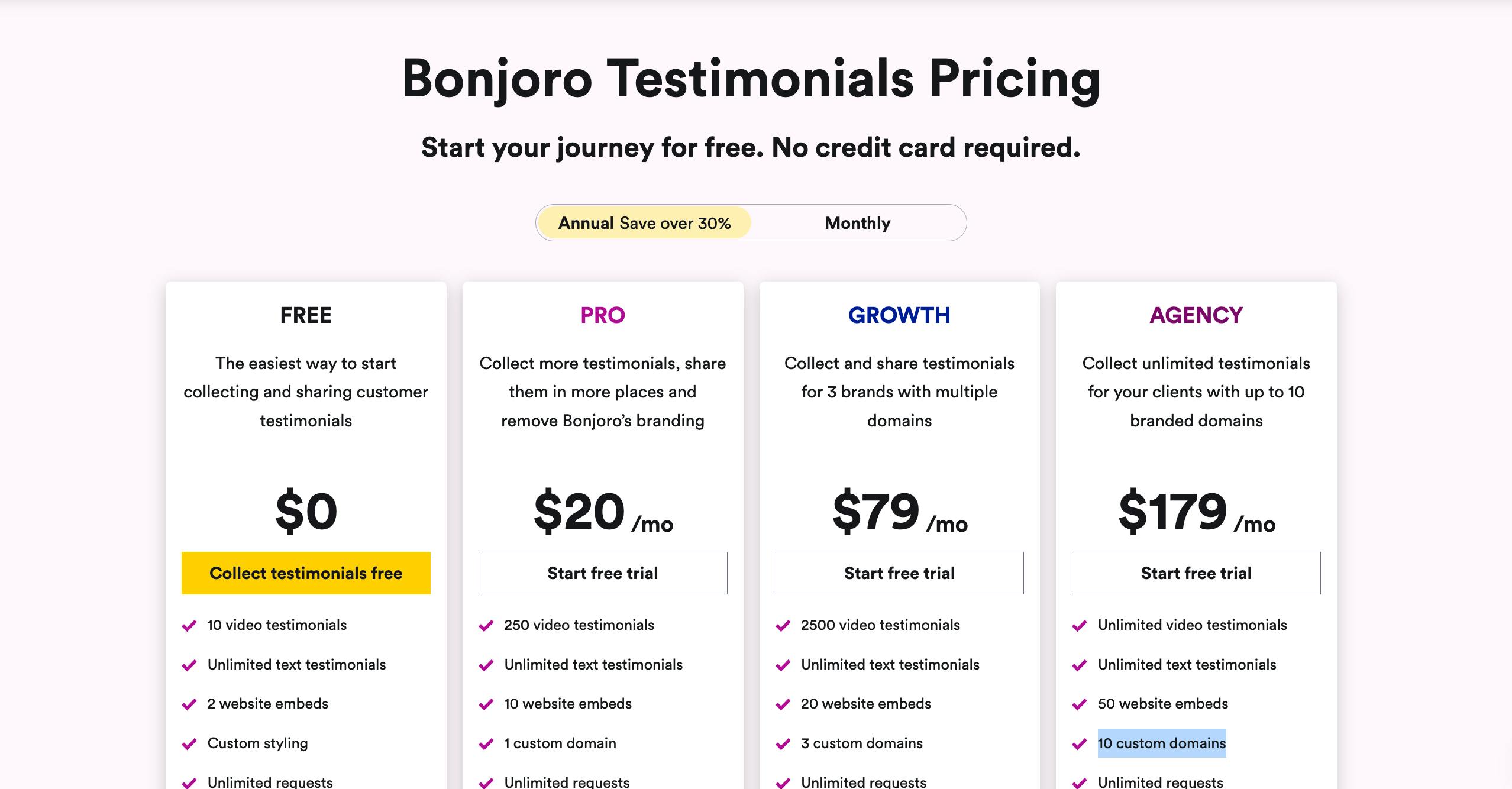 They also have a super fairly priced Agency plan (that includes 10 custom domains) which makes it the perfect tool for agencies managing their clients testimonial collection and publishing.