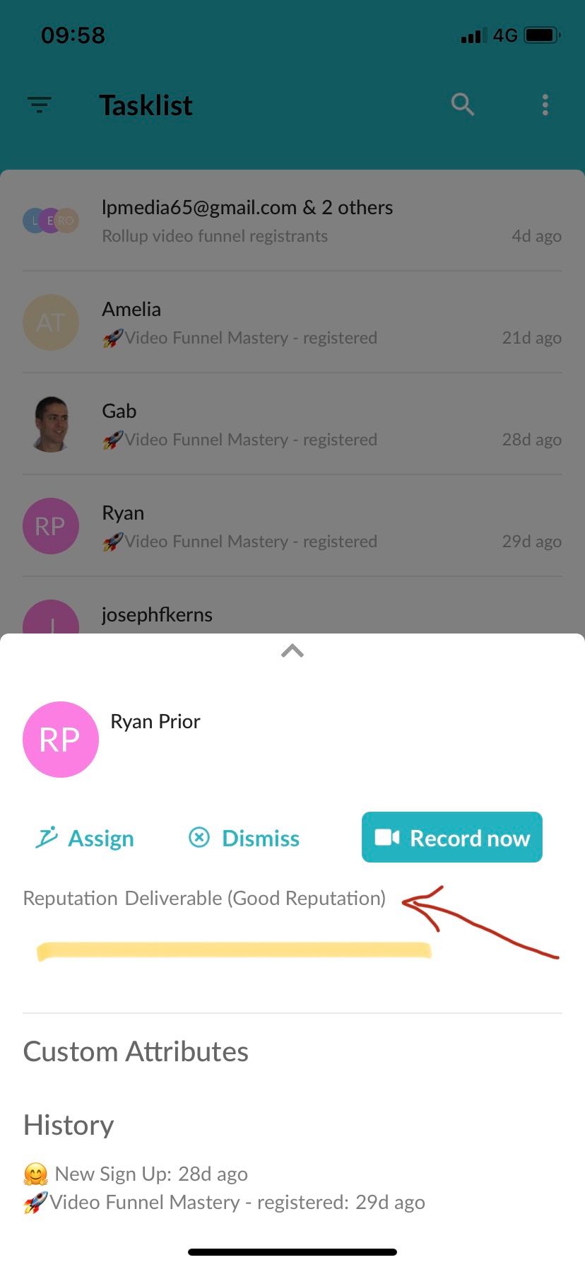 We make this really simple in the new app by showing you their email reputation right before you click to record your video. So if you see an address that is undeliverable or risky, you can take the call to delete that contact and move on to your next video.